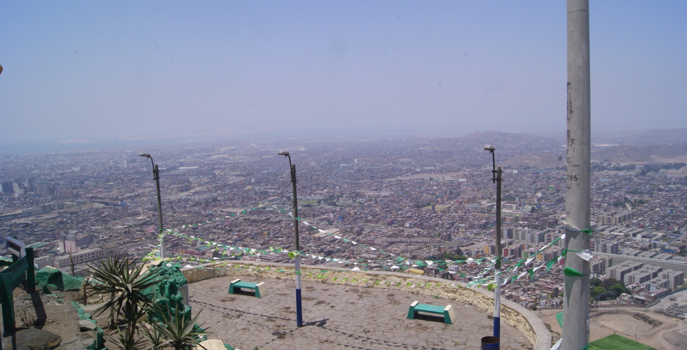 So nah am Plaza de Aramas zu wohnen musst ich ausnutzen und spazierte durch eine wohlhabende Gegend. Vorbei an reich verzierten Gebäuden und Plätzen mit Arkaden, kolonialen Bögen. KFC und Pizza Hut versteckt hinter alten Fassaden. Auf dem Plaza de Aramas wurde der Weihnachtsbaum aufgestellt und Rentiere schmücken die Grünflächen und grasen im Sonnenschein. Mein Ziel war es bei diesem Besuch den Mirador San Cristobal zu erklimmen und bei schönem Wetter die Aussicht über die Stadt zu genießen. Nach einer Stunde aufstieg wurde ich auf dem Gipfel von der Touristenpolizei empfangen. Sie warnten mich, dass es gefährlich wäre, alleine durch die Gegend zu laufen und boten mir an, mich zum Plaza de Aramas zu fahren. Auch wenn ihr Service meinem Reisegefährten Erik wirklich geholfen war, konnte ich diesen Polizisten einfach nicht trauen und lehnte dankend ab. Sie versuchten mich noch ein paar Mal zu überreden.